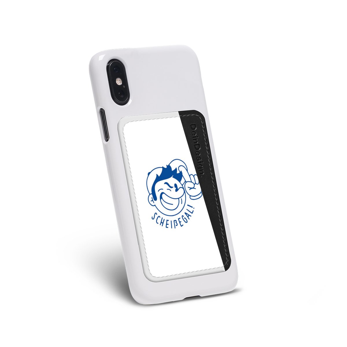 We advise to clean your phone case with a soft cloth and a mild detergent first. On the back of the card holder you will find an adhesive strip. Pull off the protective film and press the card holder firmly against the phone case – that’s it!