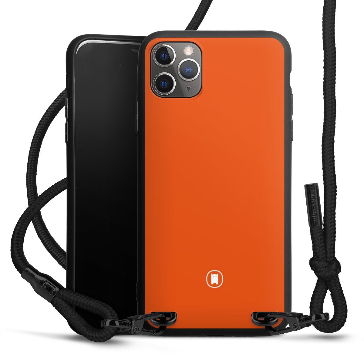 The matt black silicone case is made of flexible TPU (thermoplastic polyurethane) and offers robust protection. The durable, unbreakable material makes the cover flexible and dimensionally stable at the same time. The matte surface makes your design stand out more and is less susceptible to fingerprints and dirt. The stylish trend accessory fits comfortably in the hand and is perfectly complemented by the fabric (polyester) mobile phone strap. The braided fabric strap is approx. 1.70 metres long with a diameter of approx. 0.5 cm. Due to the special knotting technique, the length of the strap can be adjusted by simply pulling it, so that you can adapt it individually to your wishes. The practical case to wear around your neck is available with the fabric strap in black. As a little icing on the cake, we have provided the strap with a chic metal fastener in matt black. The strap is securely fastened to the case with loops made of high-quality genuine leather and press studs. The ends of the fabric strap are covered with metallic end caps and thus protected from fraying.