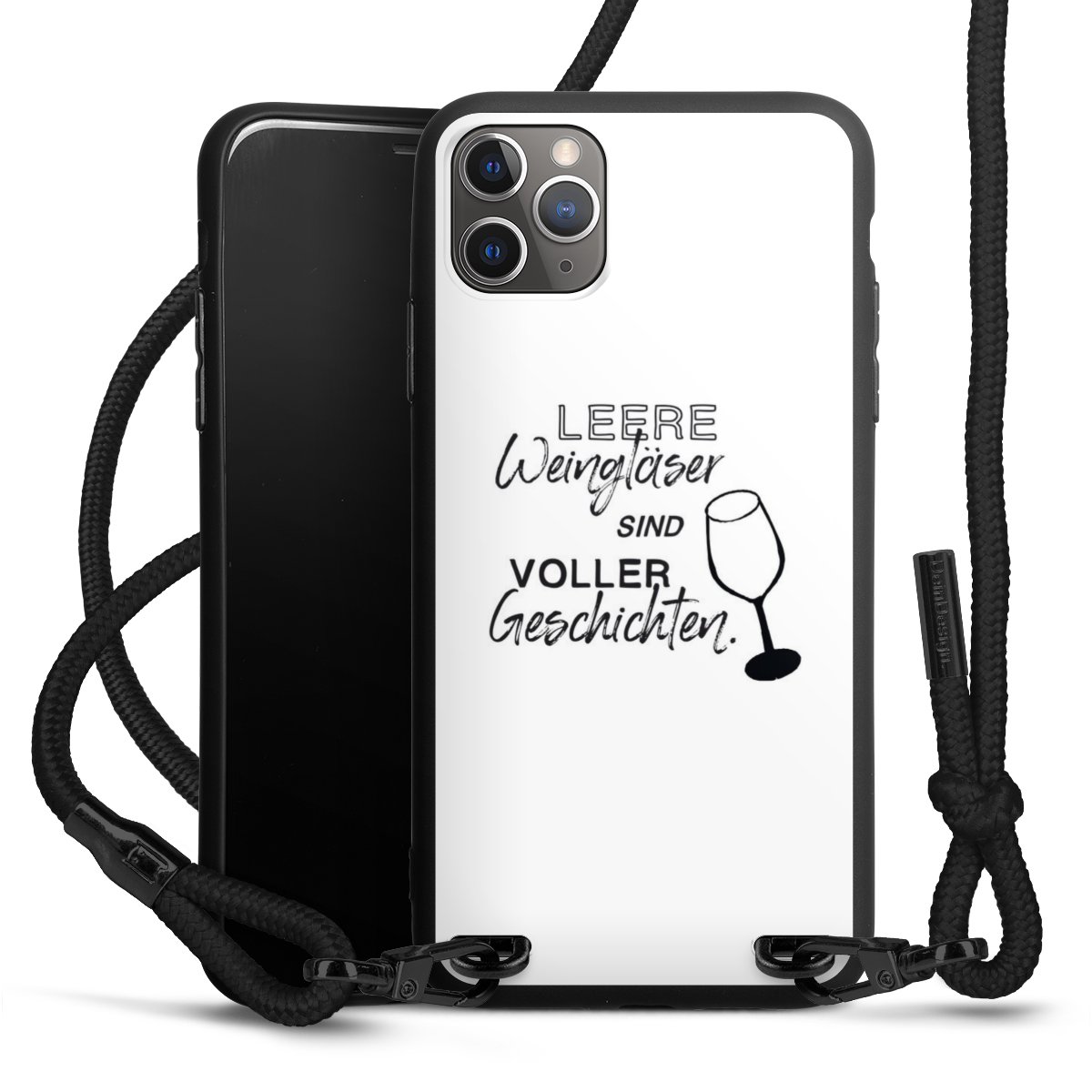 The matt black silicone case is made of flexible TPU (thermoplastic polyurethane) and offers robust protection. The durable, unbreakable material makes the cover flexible and dimensionally stable at the same time. The matte surface makes your design stand out more and is less susceptible to fingerprints and dirt. The stylish trend accessory fits comfortably in the hand and is perfectly complemented by the fabric (polyester) mobile phone strap. The braided fabric strap is approx. 1.70 metres long with a diameter of approx. 0.5 cm. Due to the special knotting technique, the length of the strap can be adjusted by simply pulling it, so that you can adapt it individually to your wishes. The practical case to wear around your neck is available with the fabric strap in black. As a little icing on the cake, we have provided the strap with a chic metal fastener in matt black. The strap is securely fastened to the case with loops made of high-quality genuine leather and press studs. The ends of the fabric strap are covered with metallic end caps and thus protected from fraying.