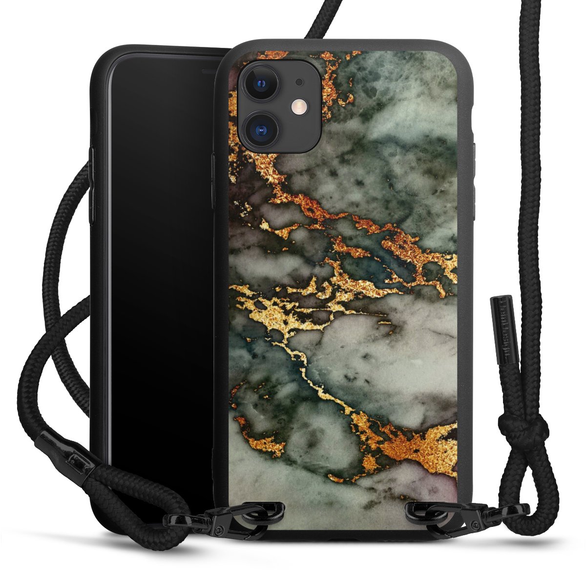 Pure Black: Phone case, fabric strap and metal details in stylish matt black.