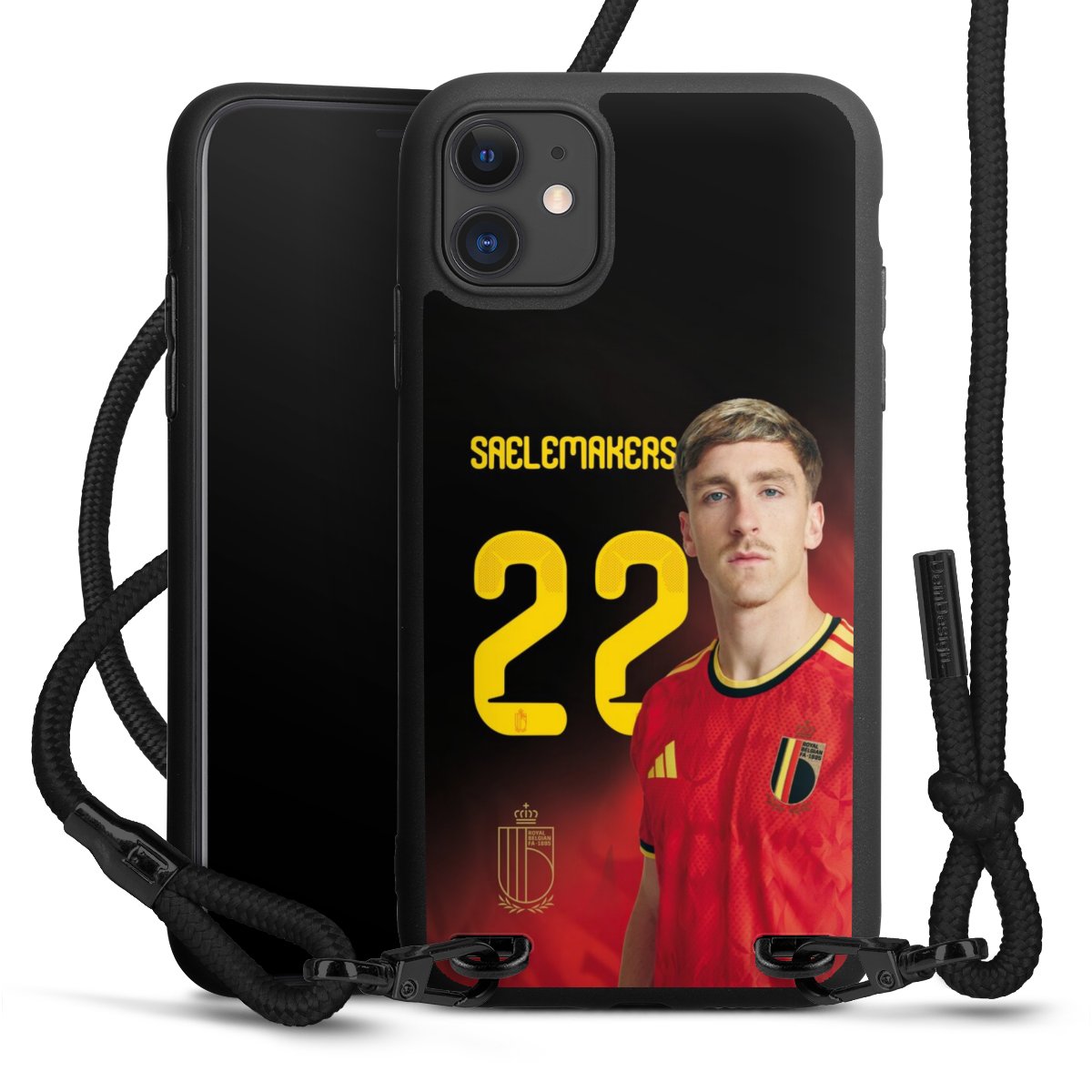The matt black silicone case is made of flexible TPU (thermoplastic polyurethane) and offers robust protection. The durable, unbreakable material makes the cover flexible and dimensionally stable at the same time. The matte surface makes your design stand out more and is less susceptible to fingerprints and dirt. The stylish trend accessory fits comfortably in the hand and is perfectly complemented by the fabric (polyester) mobile phone strap. The braided fabric strap is approx. 1.70 metres long with a diameter of approx. 0.5 cm. Due to the special knotting technique, the length of the strap can be adjusted by simply pulling it, so that you can adapt it individually to your wishes. The practical case to wear around your neck is available with the fabric strap in black. As a little icing on the cake, we have provided the strap with a chic metal fastener in matt black. The strap is securely fastened to the case with loops made of high-quality genuine leather and press studs. The ends of the fabric strap are covered with metallic end caps and thus protected from fraying.