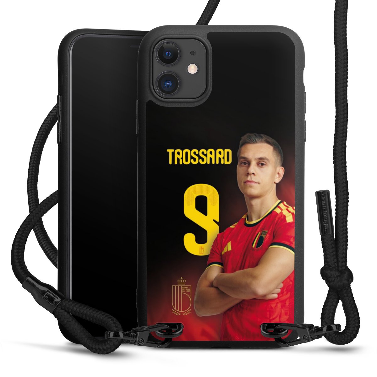 The matt black silicone case is made of flexible TPU (thermoplastic polyurethane) and offers robust protection. The durable, unbreakable material makes the cover flexible and dimensionally stable at the same time. The matte surface makes your design stand out more and is less susceptible to fingerprints and dirt. The stylish trend accessory fits comfortably in the hand and is perfectly complemented by the fabric (polyester) mobile phone strap. The braided fabric strap is approx. 1.70 metres long with a diameter of approx. 0.5 cm. Due to the special knotting technique, the length of the strap can be adjusted by simply pulling it, so that you can adapt it individually to your wishes. The practical case to wear around your neck is available with the fabric strap in black. As a little icing on the cake, we have provided the strap with a chic metal fastener in matt black. The strap is securely fastened to the case with loops made of high-quality genuine leather and press studs. The ends of the fabric strap are covered with metallic end caps and thus protected from fraying.
