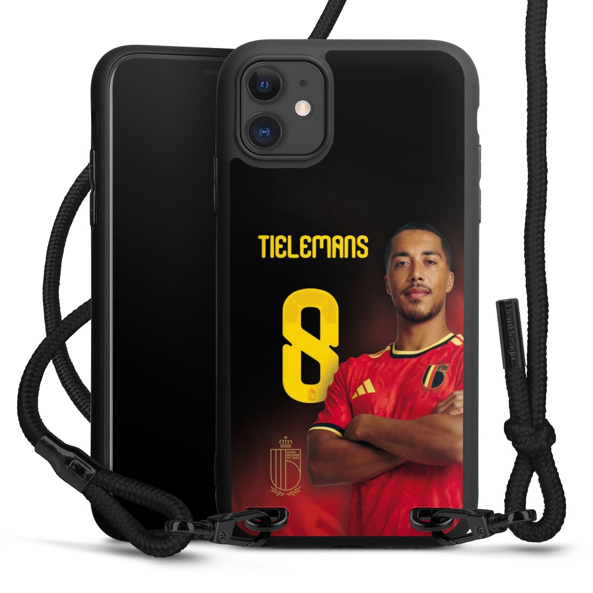 The matt black silicone case is made of flexible TPU (thermoplastic polyurethane) and offers robust protection. The durable, unbreakable material makes the cover flexible and dimensionally stable at the same time. The matte surface makes your design stand out more and is less susceptible to fingerprints and dirt. The stylish trend accessory fits comfortably in the hand and is perfectly complemented by the fabric (polyester) mobile phone strap. The braided fabric strap is approx. 1.70 metres long with a diameter of approx. 0.5 cm. Due to the special knotting technique, the length of the strap can be adjusted by simply pulling it, so that you can adapt it individually to your wishes. The practical case to wear around your neck is available with the fabric strap in black. As a little icing on the cake, we have provided the strap with a chic metal fastener in matt black. The strap is securely fastened to the case with loops made of high-quality genuine leather and press studs. The ends of the fabric strap are covered with metallic end caps and thus protected from fraying.