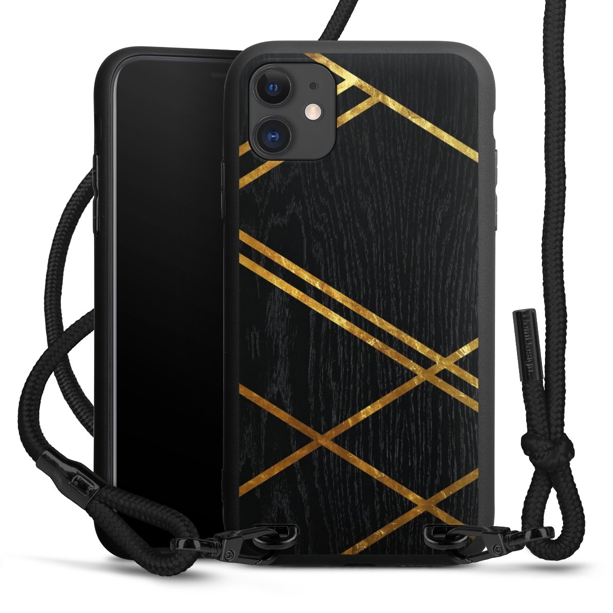 Pure Black: Phone case, fabric strap and metal details in stylish matt black.