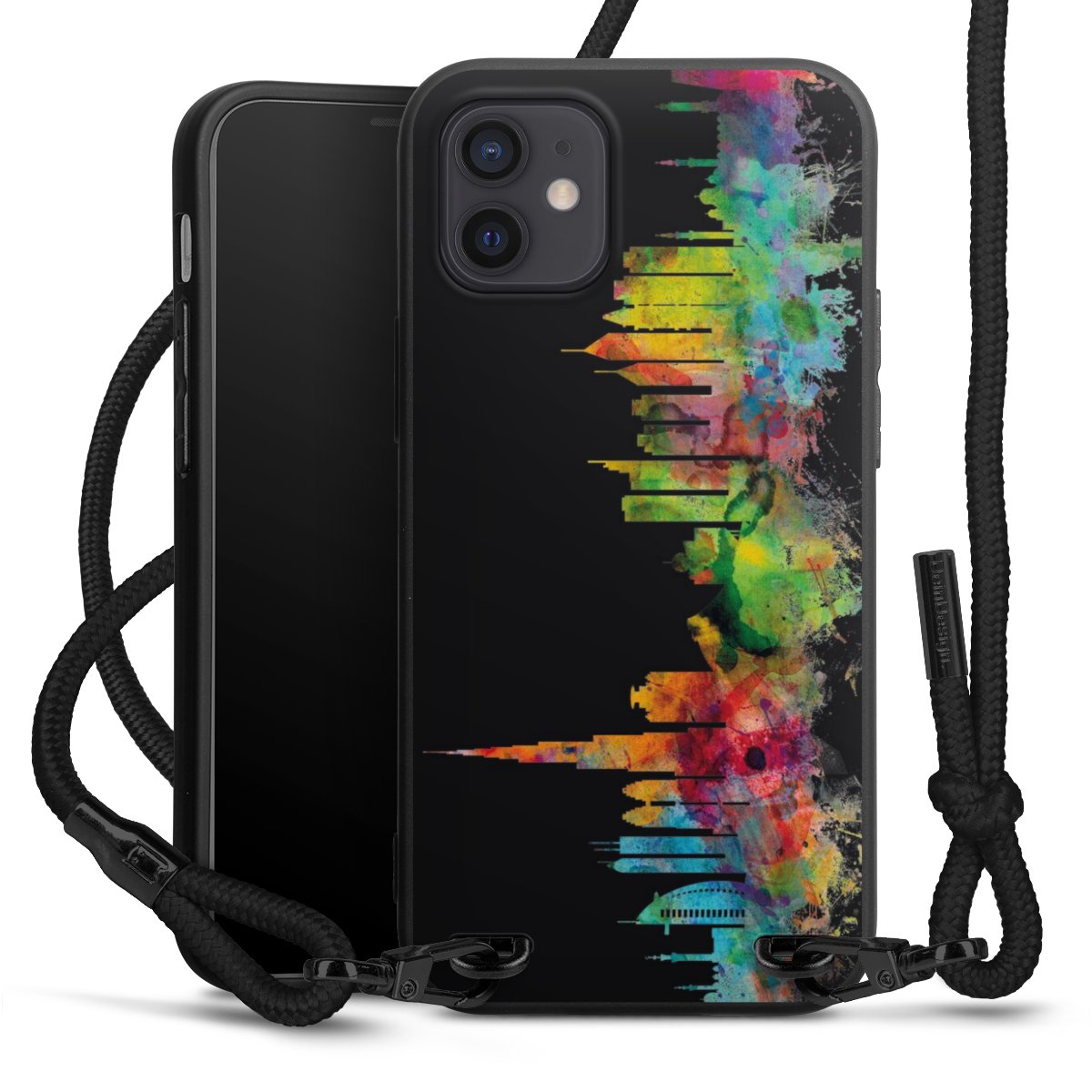We use the solid direct print process for this phone case, which is why the print area only covers the back and the edge remains unprinted. The case to wear around your neck can be ordered unprinted, fully printed, or partially printed. For your design, either choose one of our exclusive shop motifs or get creative and create your own design, for example with photos and overlays. Design your own personal trend accessory and make an individual statement on the streets!
