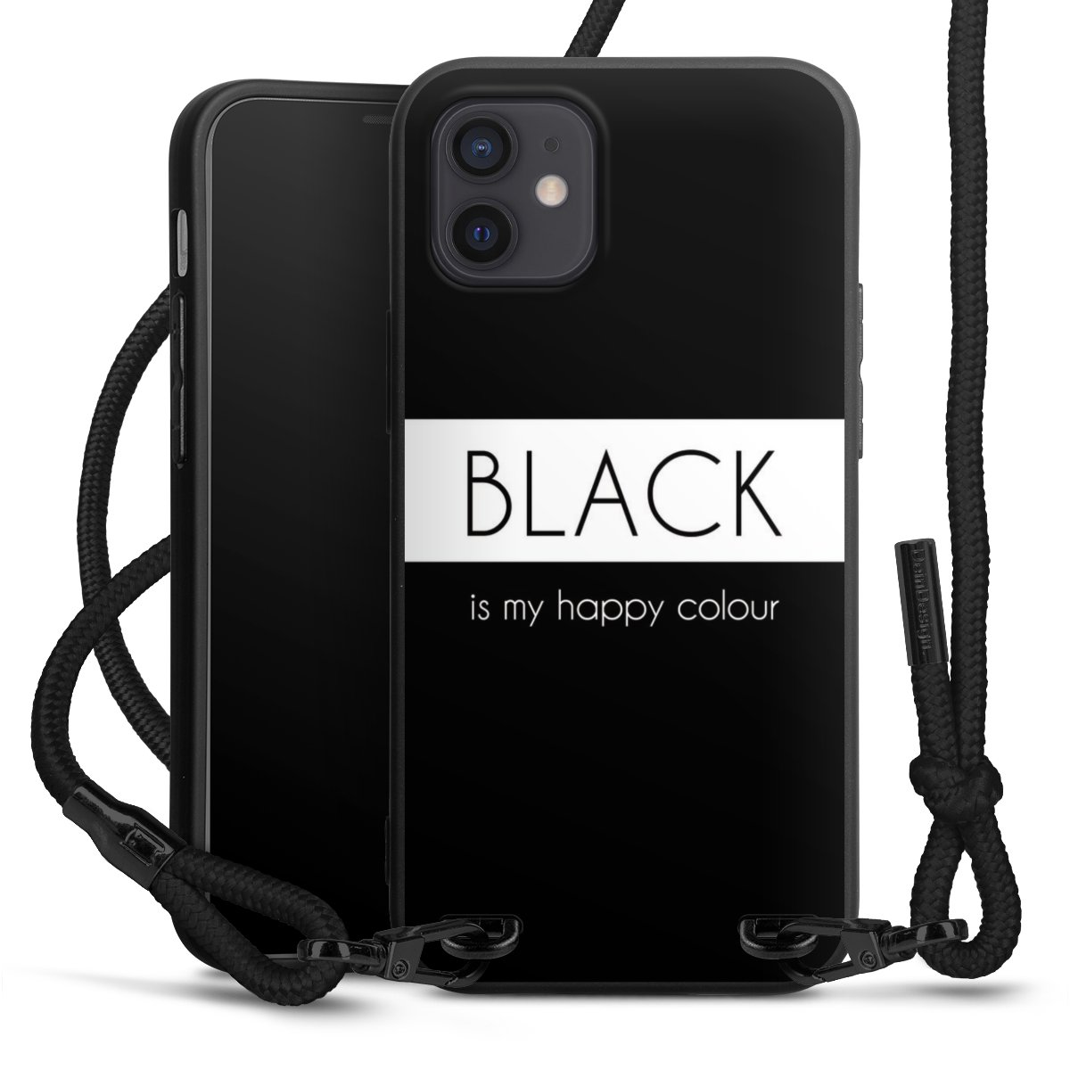 Pure Black: Phone case, fabric strap and metal details in stylish matt black.
