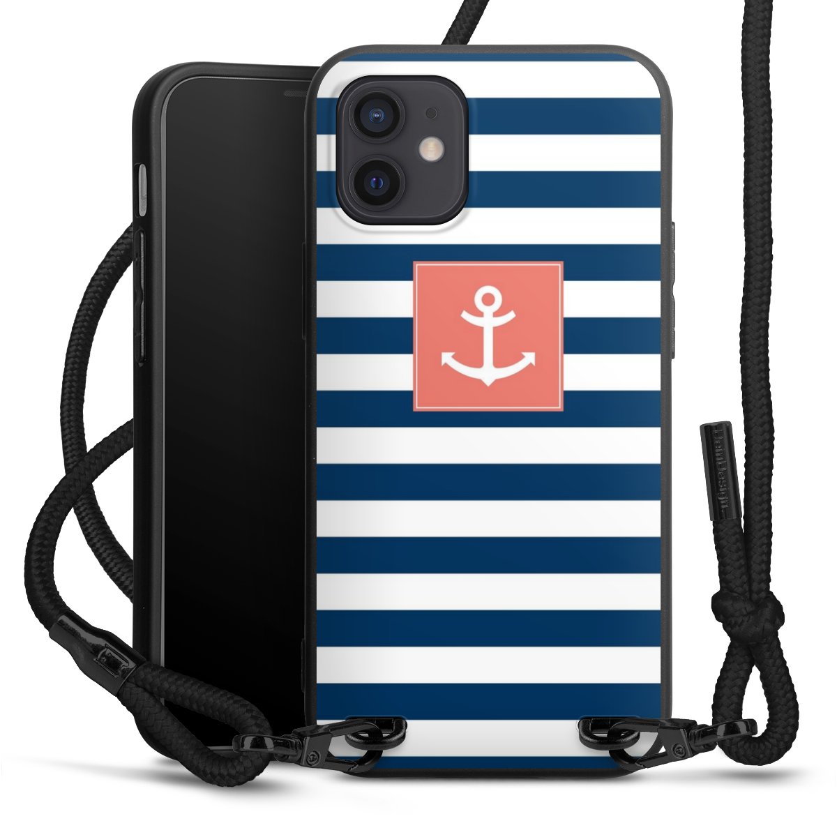 The matt black silicone case is made of flexible TPU (thermoplastic polyurethane) and offers robust protection. The durable, unbreakable material makes the cover flexible and dimensionally stable at the same time. The matte surface makes your design stand out more and is less susceptible to fingerprints and dirt. The stylish trend accessory fits comfortably in the hand and is perfectly complemented by the fabric (polyester) mobile phone strap. The braided fabric strap is approx. 1.70 metres long with a diameter of approx. 0.5 cm. Due to the special knotting technique, the length of the strap can be adjusted by simply pulling it, so that you can adapt it individually to your wishes. The practical case to wear around your neck is available with the fabric strap in black. As a little icing on the cake, we have provided the strap with a chic metal fastener in matt black. The strap is securely fastened to the case with loops made of high-quality genuine leather and press studs. The ends of the fabric strap are covered with metallic end caps and thus protected from fraying.