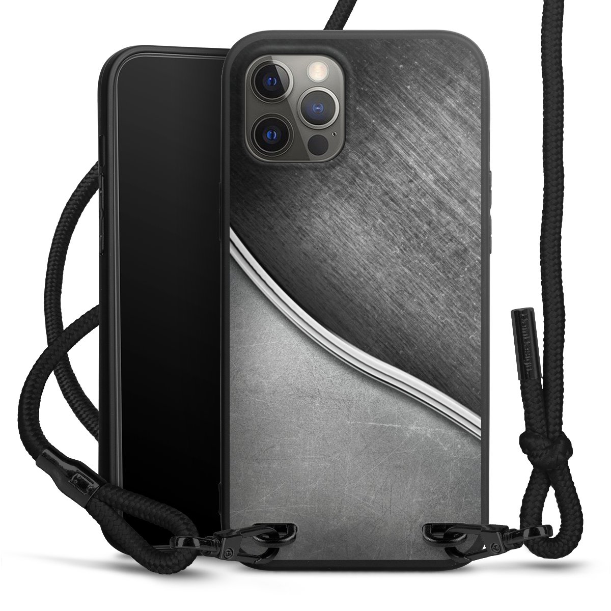 Pure Black: Phone case, fabric strap and metal details in stylish matt black.