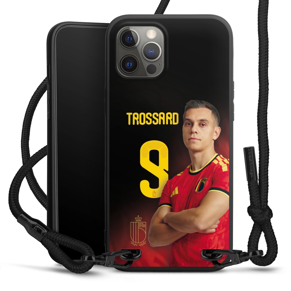 The matt black silicone case is made of flexible TPU (thermoplastic polyurethane) and offers robust protection. The durable, unbreakable material makes the cover flexible and dimensionally stable at the same time. The matte surface makes your design stand out more and is less susceptible to fingerprints and dirt. The stylish trend accessory fits comfortably in the hand and is perfectly complemented by the fabric (polyester) mobile phone strap. The braided fabric strap is approx. 1.70 metres long with a diameter of approx. 0.5 cm. Due to the special knotting technique, the length of the strap can be adjusted by simply pulling it, so that you can adapt it individually to your wishes. The practical case to wear around your neck is available with the fabric strap in black. As a little icing on the cake, we have provided the strap with a chic metal fastener in matt black. The strap is securely fastened to the case with loops made of high-quality genuine leather and press studs. The ends of the fabric strap are covered with metallic end caps and thus protected from fraying.