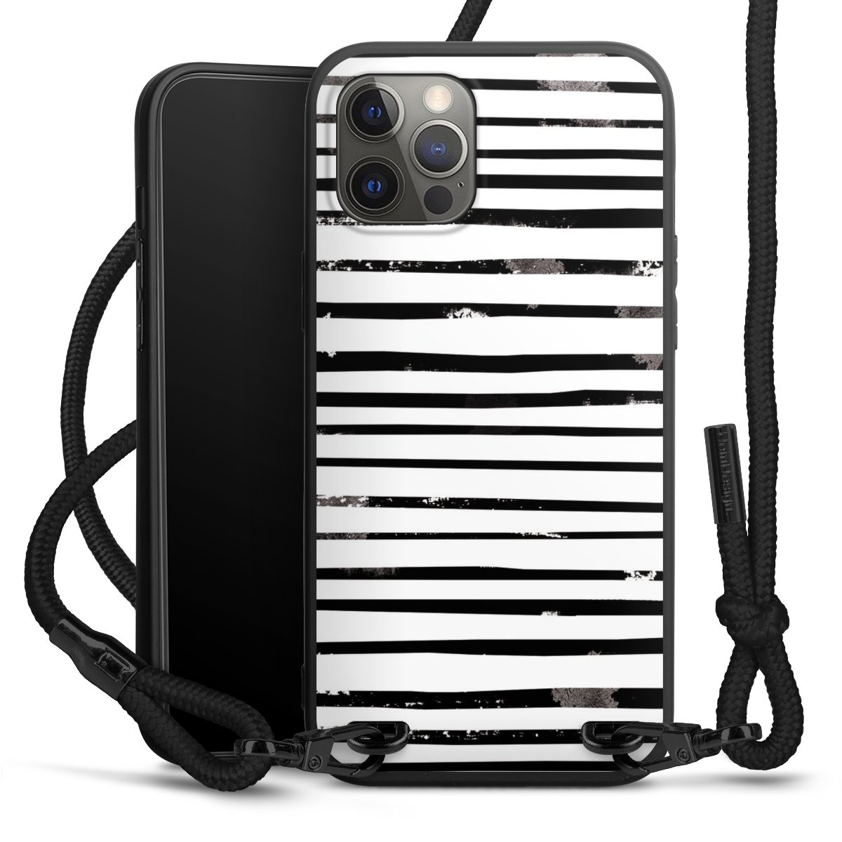 Pure Black: Phone case, fabric strap and metal details in stylish matt black.