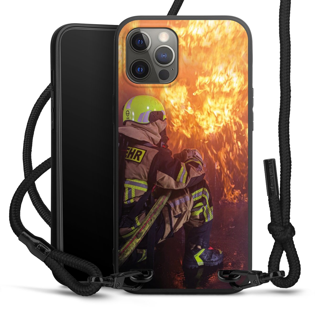 Pure Black: Phone case, fabric strap and metal details in stylish matt black.
