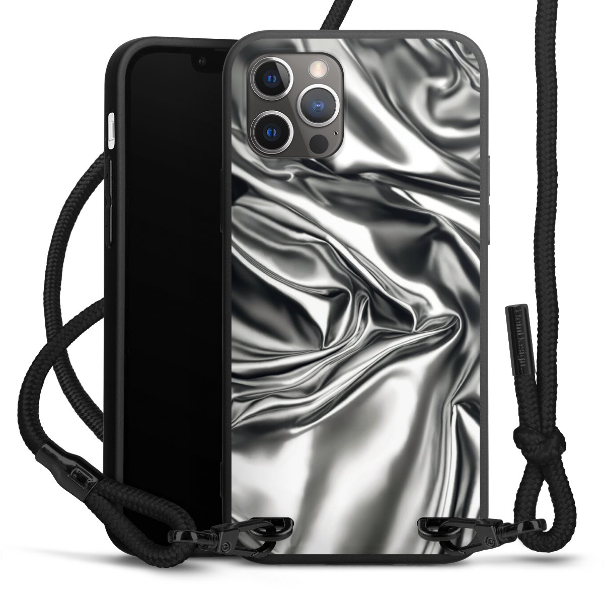The matt black silicone case is made of flexible TPU (thermoplastic polyurethane) and offers robust protection. The durable, unbreakable material makes the cover flexible and dimensionally stable at the same time. The matte surface makes your design stand out more and is less susceptible to fingerprints and dirt. The stylish trend accessory fits comfortably in the hand and is perfectly complemented by the fabric (polyester) mobile phone strap. The braided fabric strap is approx. 1.70 metres long with a diameter of approx. 0.5 cm. Due to the special knotting technique, the length of the strap can be adjusted by simply pulling it, so that you can adapt it individually to your wishes. The practical case to wear around your neck is available with the fabric strap in black. As a little icing on the cake, we have provided the strap with a chic metal fastener in matt black. The strap is securely fastened to the case with loops made of high-quality genuine leather and press studs. The ends of the fabric strap are covered with metallic end caps and thus protected from fraying.