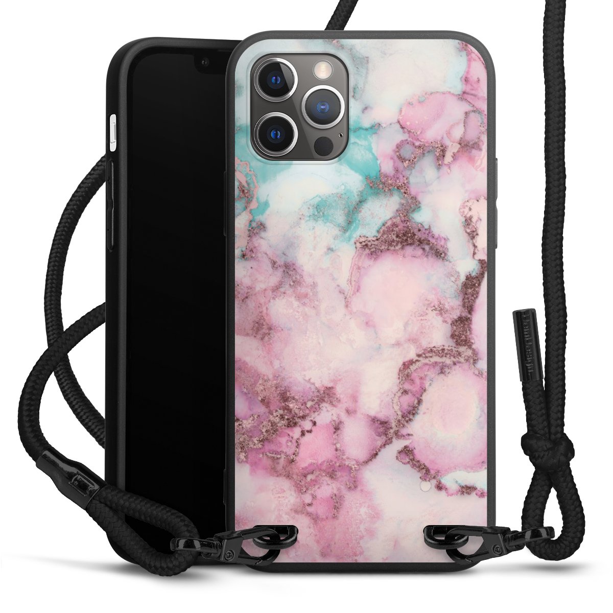 We use the solid direct print process for this phone case, which is why the print area only covers the back and the edge remains unprinted. The case to wear around your neck can be ordered unprinted, fully printed, or partially printed. For your design, either choose one of our exclusive shop motifs or get creative and create your own design, for example with photos and overlays. Design your own personal trend accessory and make an individual statement on the streets!