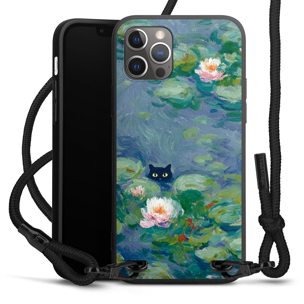Pure Black: Phone case, fabric strap and metal details in stylish matt black.