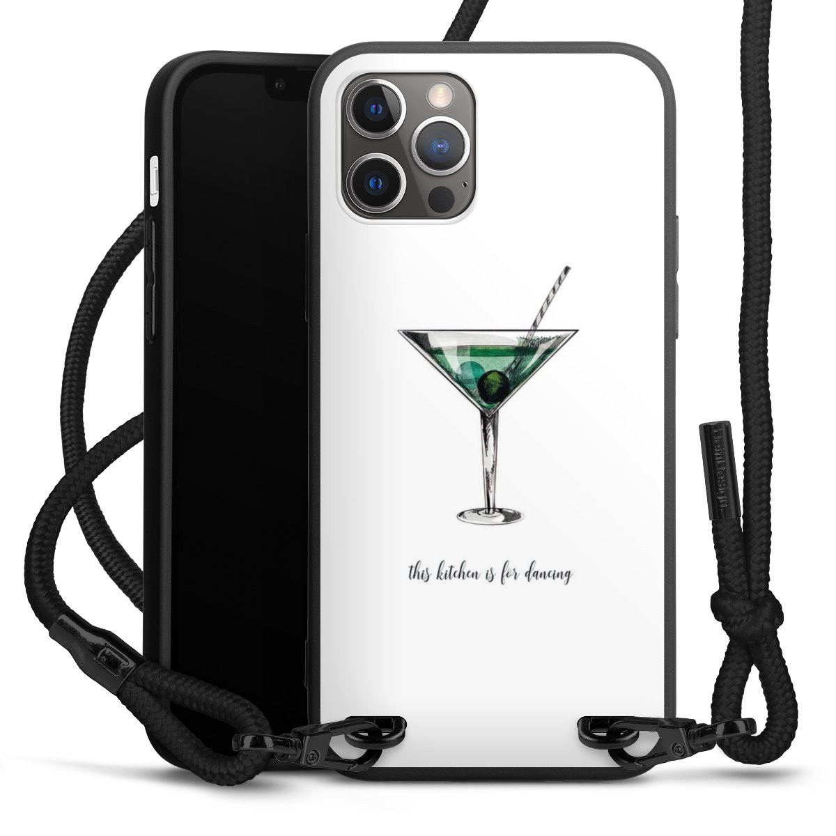 Pure Black: Phone case, fabric strap and metal details in stylish matt black.