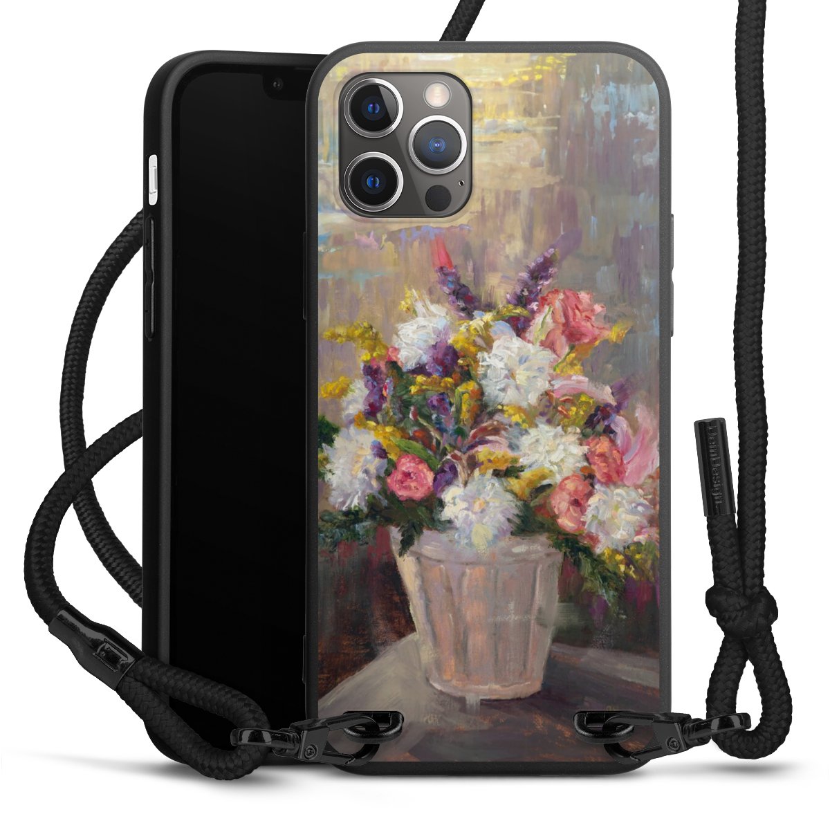 The matt black silicone case is made of flexible TPU (thermoplastic polyurethane) and offers robust protection. The durable, unbreakable material makes the cover flexible and dimensionally stable at the same time. The matte surface makes your design stand out more and is less susceptible to fingerprints and dirt. The stylish trend accessory fits comfortably in the hand and is perfectly complemented by the fabric (polyester) mobile phone strap. The braided fabric strap is approx. 1.70 metres long with a diameter of approx. 0.5 cm. Due to the special knotting technique, the length of the strap can be adjusted by simply pulling it, so that you can adapt it individually to your wishes. The practical case to wear around your neck is available with the fabric strap in black. As a little icing on the cake, we have provided the strap with a chic metal fastener in matt black. The strap is securely fastened to the case with loops made of high-quality genuine leather and press studs. The ends of the fabric strap are covered with metallic end caps and thus protected from fraying.