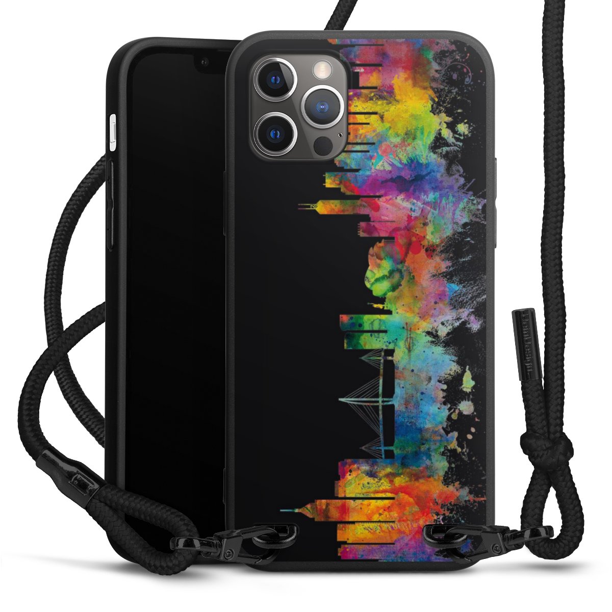We use the solid direct print process for this phone case, which is why the print area only covers the back and the edge remains unprinted. The case to wear around your neck can be ordered unprinted, fully printed, or partially printed. For your design, either choose one of our exclusive shop motifs or get creative and create your own design, for example with photos and overlays. Design your own personal trend accessory and make an individual statement on the streets!