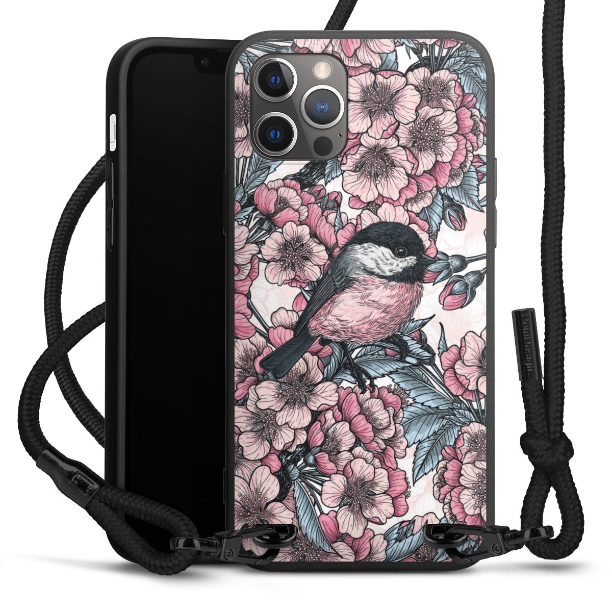 Pure Black: Phone case, fabric strap and metal details in stylish matt black.