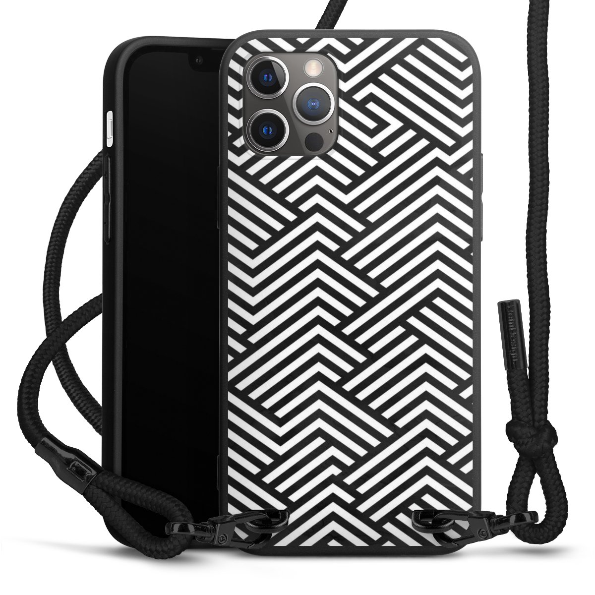 Pure Black: Phone case, fabric strap and metal details in stylish matt black.