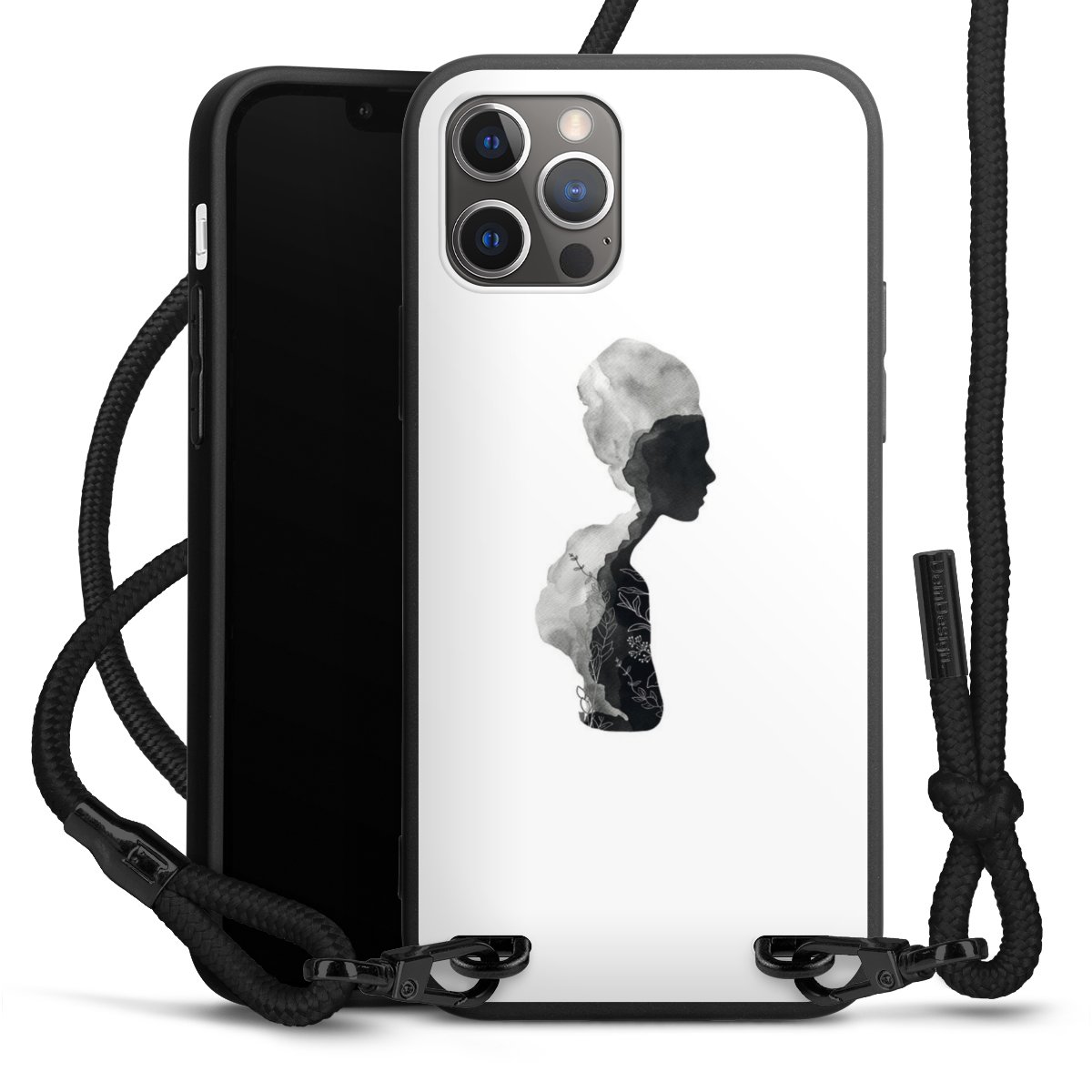 The matt black silicone case is made of flexible TPU (thermoplastic polyurethane) and offers robust protection. The durable, unbreakable material makes the cover flexible and dimensionally stable at the same time. The matte surface makes your design stand out more and is less susceptible to fingerprints and dirt. The stylish trend accessory fits comfortably in the hand and is perfectly complemented by the fabric (polyester) mobile phone strap. The braided fabric strap is approx. 1.70 metres long with a diameter of approx. 0.5 cm. Due to the special knotting technique, the length of the strap can be adjusted by simply pulling it, so that you can adapt it individually to your wishes. The practical case to wear around your neck is available with the fabric strap in black. As a little icing on the cake, we have provided the strap with a chic metal fastener in matt black. The strap is securely fastened to the case with loops made of high-quality genuine leather and press studs. The ends of the fabric strap are covered with metallic end caps and thus protected from fraying.