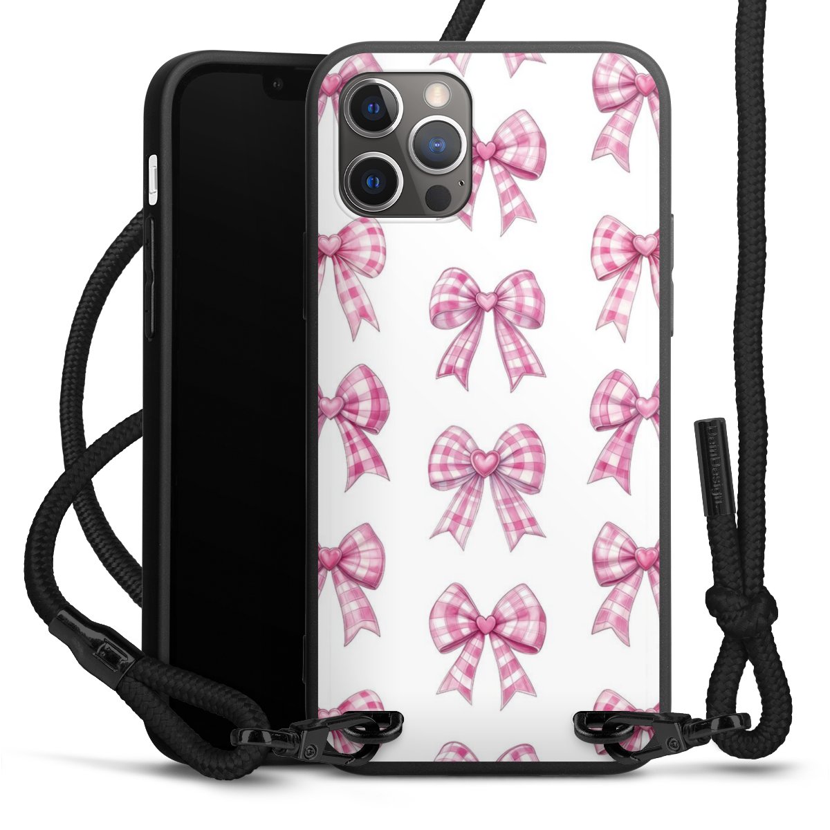 Pure Black: Phone case, fabric strap and metal details in stylish matt black.