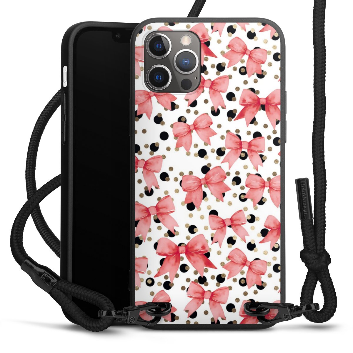 Pure Black: Phone case, fabric strap and metal details in stylish matt black.