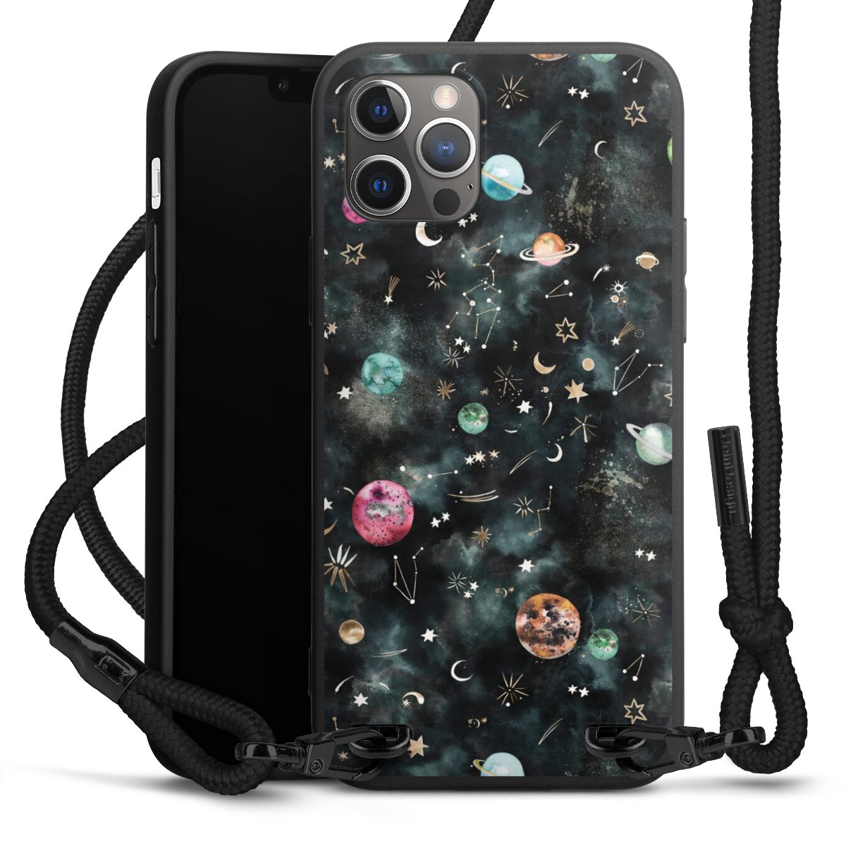 We use the solid direct print process for this phone case, which is why the print area only covers the back and the edge remains unprinted. The case to wear around your neck can be ordered unprinted, fully printed, or partially printed. For your design, either choose one of our exclusive shop motifs or get creative and create your own design, for example with photos and overlays. Design your own personal trend accessory and make an individual statement on the streets!