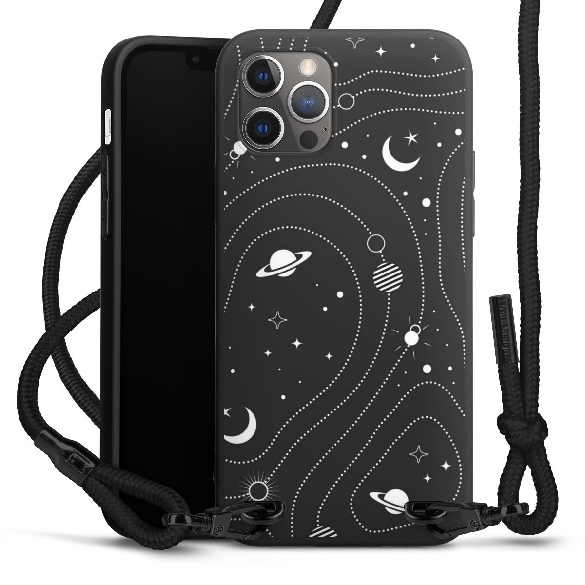 The matt black silicone case is made of flexible TPU (thermoplastic polyurethane) and offers robust protection. The durable, unbreakable material makes the cover flexible and dimensionally stable at the same time. The matte surface makes your design stand out more and is less susceptible to fingerprints and dirt. The stylish trend accessory fits comfortably in the hand and is perfectly complemented by the fabric (polyester) mobile phone strap. The braided fabric strap is approx. 1.70 metres long with a diameter of approx. 0.5 cm. Due to the special knotting technique, the length of the strap can be adjusted by simply pulling it, so that you can adapt it individually to your wishes. The practical case to wear around your neck is available with the fabric strap in black. As a little icing on the cake, we have provided the strap with a chic metal fastener in matt black. The strap is securely fastened to the case with loops made of high-quality genuine leather and press studs. The ends of the fabric strap are covered with metallic end caps and thus protected from fraying.