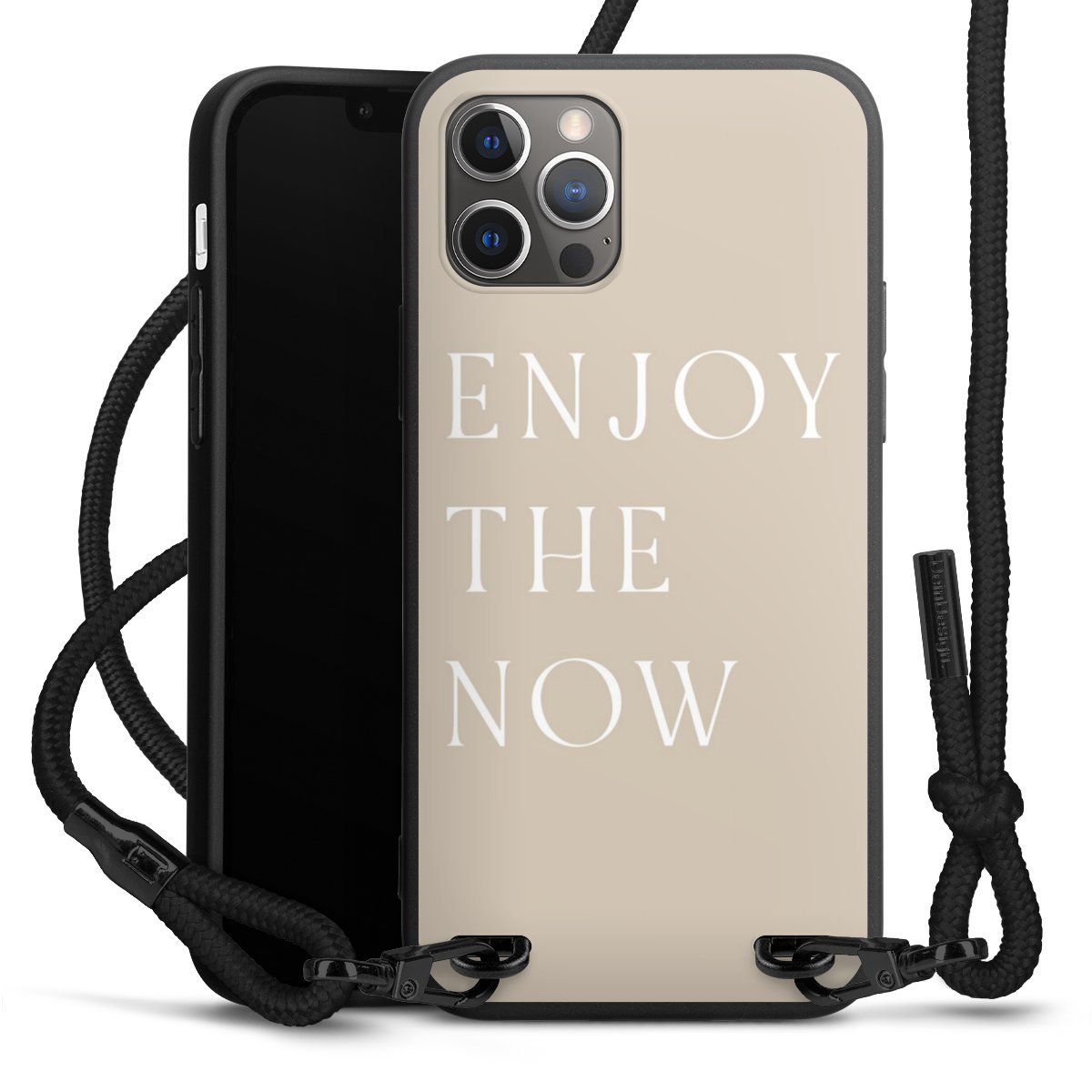 The matt black silicone case is made of flexible TPU (thermoplastic polyurethane) and offers robust protection. The durable, unbreakable material makes the cover flexible and dimensionally stable at the same time. The matte surface makes your design stand out more and is less susceptible to fingerprints and dirt. The stylish trend accessory fits comfortably in the hand and is perfectly complemented by the fabric (polyester) mobile phone strap. The braided fabric strap is approx. 1.70 metres long with a diameter of approx. 0.5 cm. Due to the special knotting technique, the length of the strap can be adjusted by simply pulling it, so that you can adapt it individually to your wishes. The practical case to wear around your neck is available with the fabric strap in black. As a little icing on the cake, we have provided the strap with a chic metal fastener in matt black. The strap is securely fastened to the case with loops made of high-quality genuine leather and press studs. The ends of the fabric strap are covered with metallic end caps and thus protected from fraying.