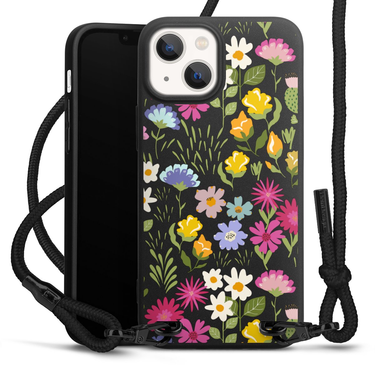 The matt black silicone case is made of flexible TPU (thermoplastic polyurethane) and offers robust protection. The durable, unbreakable material makes the cover flexible and dimensionally stable at the same time. The matte surface makes your design stand out more and is less susceptible to fingerprints and dirt. The stylish trend accessory fits comfortably in the hand and is perfectly complemented by the fabric (polyester) mobile phone strap. The braided fabric strap is approx. 1.70 metres long with a diameter of approx. 0.5 cm. Due to the special knotting technique, the length of the strap can be adjusted by simply pulling it, so that you can adapt it individually to your wishes. The practical case to wear around your neck is available with the fabric strap in black. As a little icing on the cake, we have provided the strap with a chic metal fastener in matt black. The strap is securely fastened to the case with loops made of high-quality genuine leather and press studs. The ends of the fabric strap are covered with metallic end caps and thus protected from fraying.