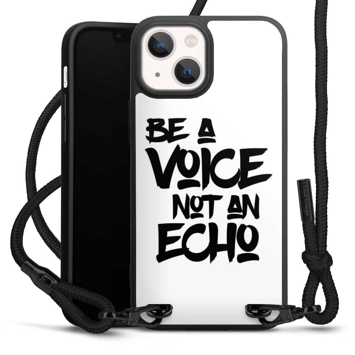 We use the solid direct print process for this phone case, which is why the print area only covers the back and the edge remains unprinted. The case to wear around your neck can be ordered unprinted, fully printed, or partially printed. For your design, either choose one of our exclusive shop motifs or get creative and create your own design, for example with photos and overlays. Design your own personal trend accessory and make an individual statement on the streets!
