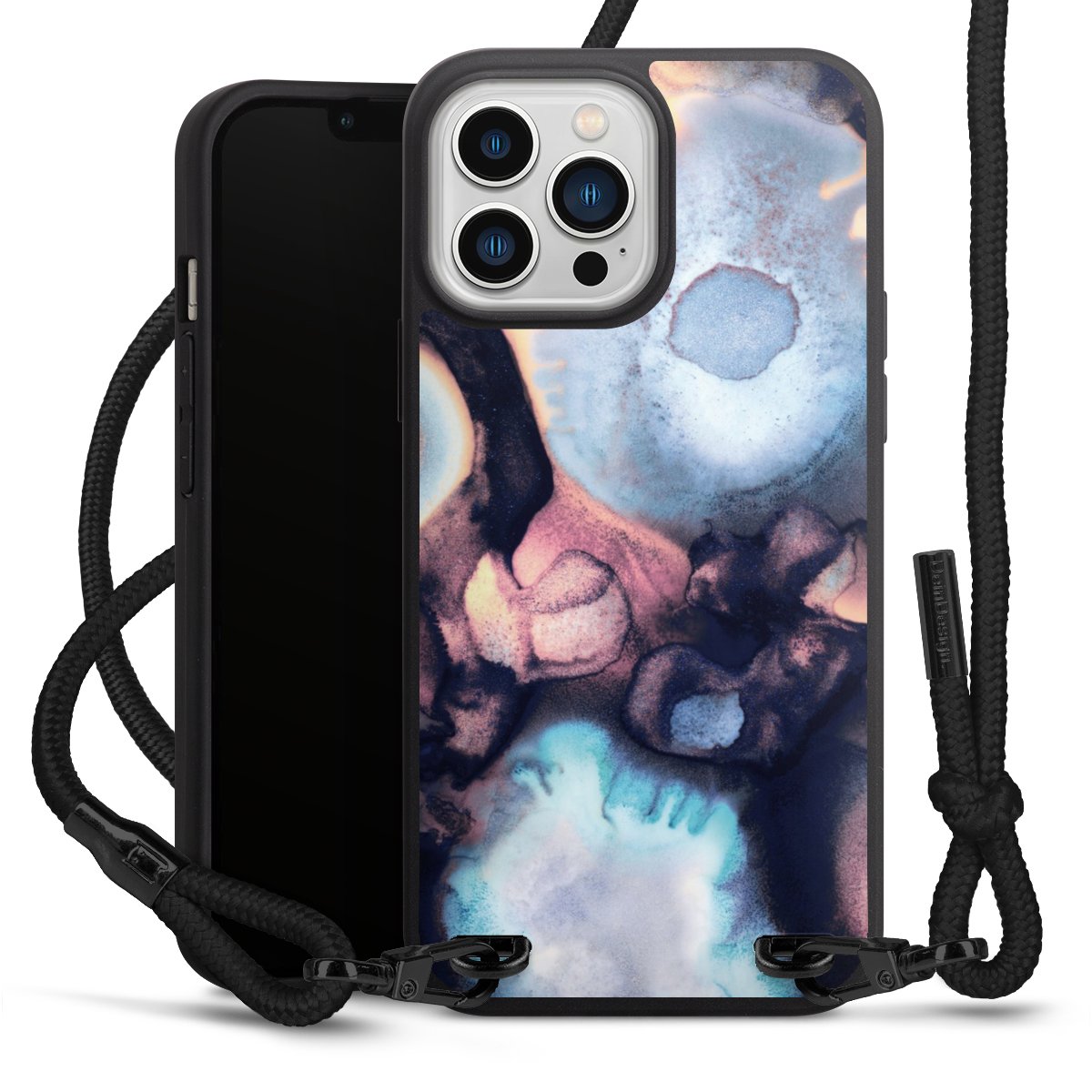 We use the solid direct print process for this phone case, which is why the print area only covers the back and the edge remains unprinted. The case to wear around your neck can be ordered unprinted, fully printed, or partially printed. For your design, either choose one of our exclusive shop motifs or get creative and create your own design, for example with photos and overlays. Design your own personal trend accessory and make an individual statement on the streets!