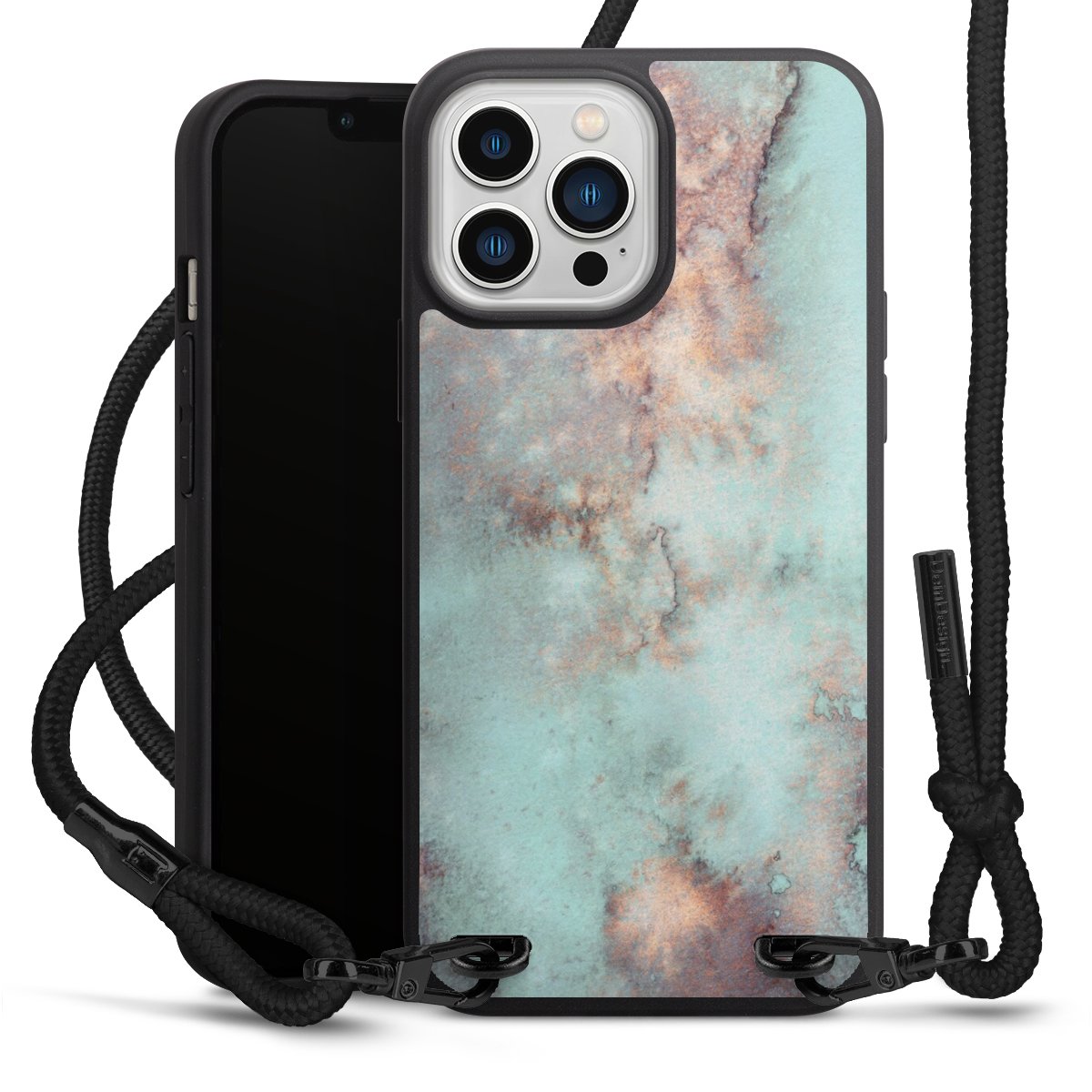 We use the solid direct print process for this phone case, which is why the print area only covers the back and the edge remains unprinted. The case to wear around your neck can be ordered unprinted, fully printed, or partially printed. For your design, either choose one of our exclusive shop motifs or get creative and create your own design, for example with photos and overlays. Design your own personal trend accessory and make an individual statement on the streets!