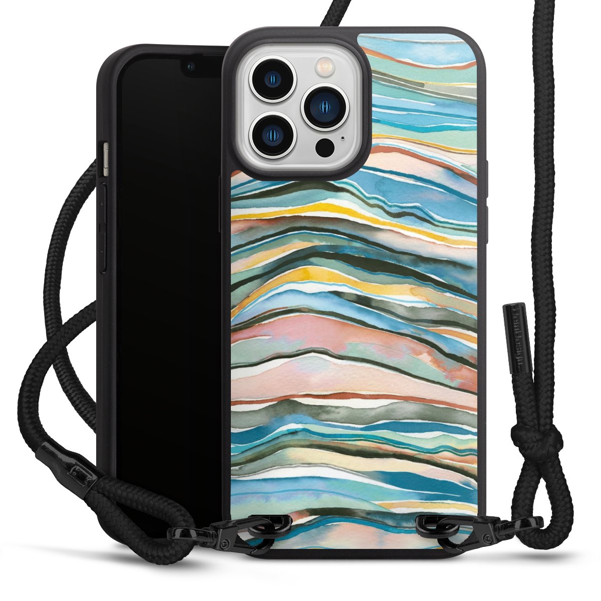 We use the solid direct print process for this phone case, which is why the print area only covers the back and the edge remains unprinted. The case to wear around your neck can be ordered unprinted, fully printed, or partially printed. For your design, either choose one of our exclusive shop motifs or get creative and create your own design, for example with photos and overlays. Design your own personal trend accessory and make an individual statement on the streets!