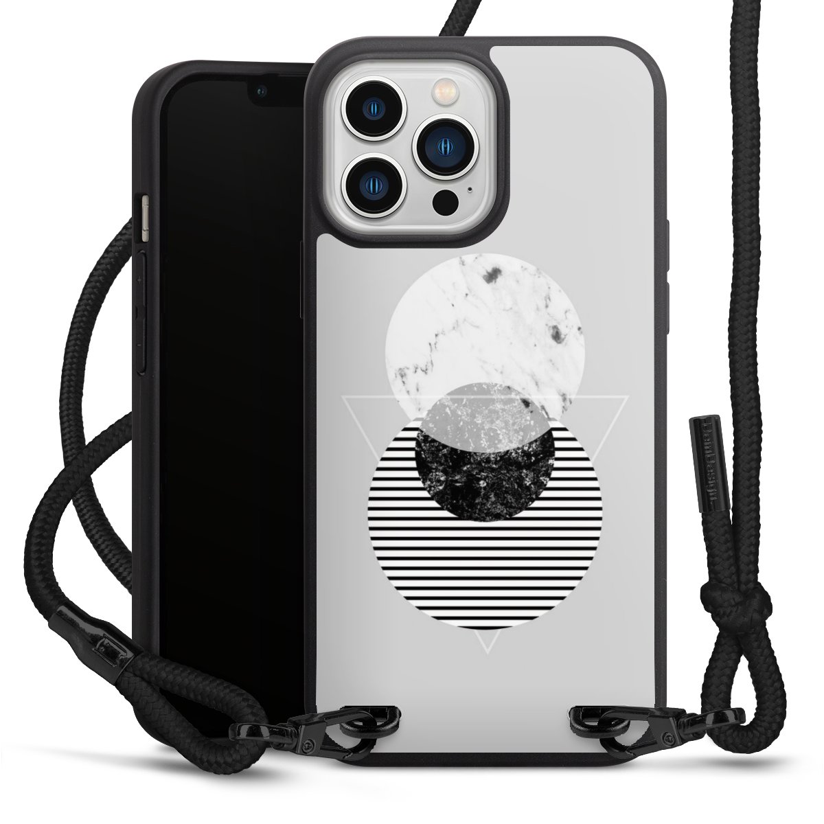 We use the solid direct print process for this phone case, which is why the print area only covers the back and the edge remains unprinted. The case to wear around your neck can be ordered unprinted, fully printed, or partially printed. For your design, either choose one of our exclusive shop motifs or get creative and create your own design, for example with photos and overlays. Design your own personal trend accessory and make an individual statement on the streets!
