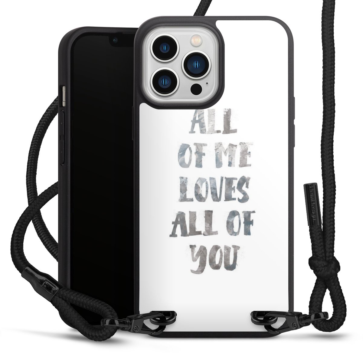 Pure Black: Phone case, fabric strap and metal details in stylish matt black.