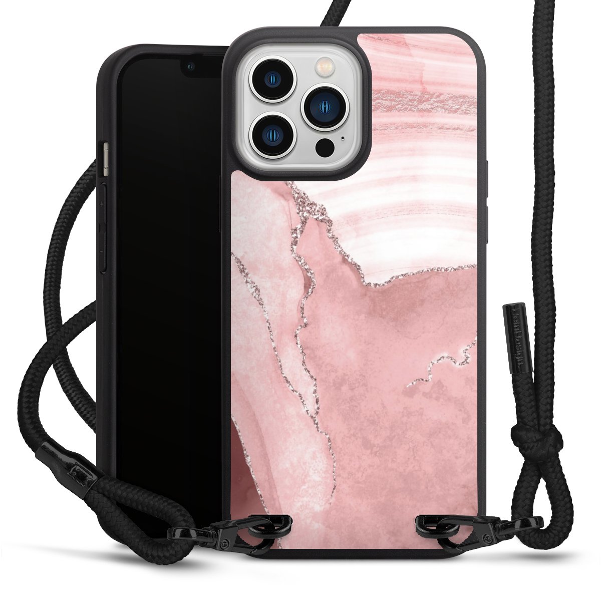 We use the solid direct print process for this phone case, which is why the print area only covers the back and the edge remains unprinted. The case to wear around your neck can be ordered unprinted, fully printed, or partially printed. For your design, either choose one of our exclusive shop motifs or get creative and create your own design, for example with photos and overlays. Design your own personal trend accessory and make an individual statement on the streets!
