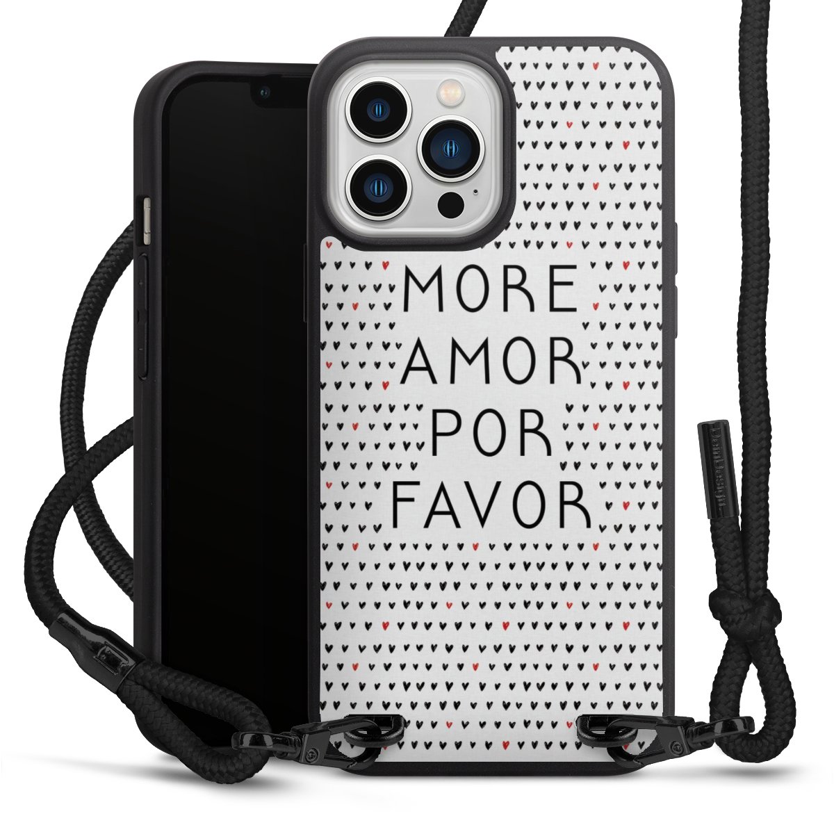We use the solid direct print process for this phone case, which is why the print area only covers the back and the edge remains unprinted. The case to wear around your neck can be ordered unprinted, fully printed, or partially printed. For your design, either choose one of our exclusive shop motifs or get creative and create your own design, for example with photos and overlays. Design your own personal trend accessory and make an individual statement on the streets!