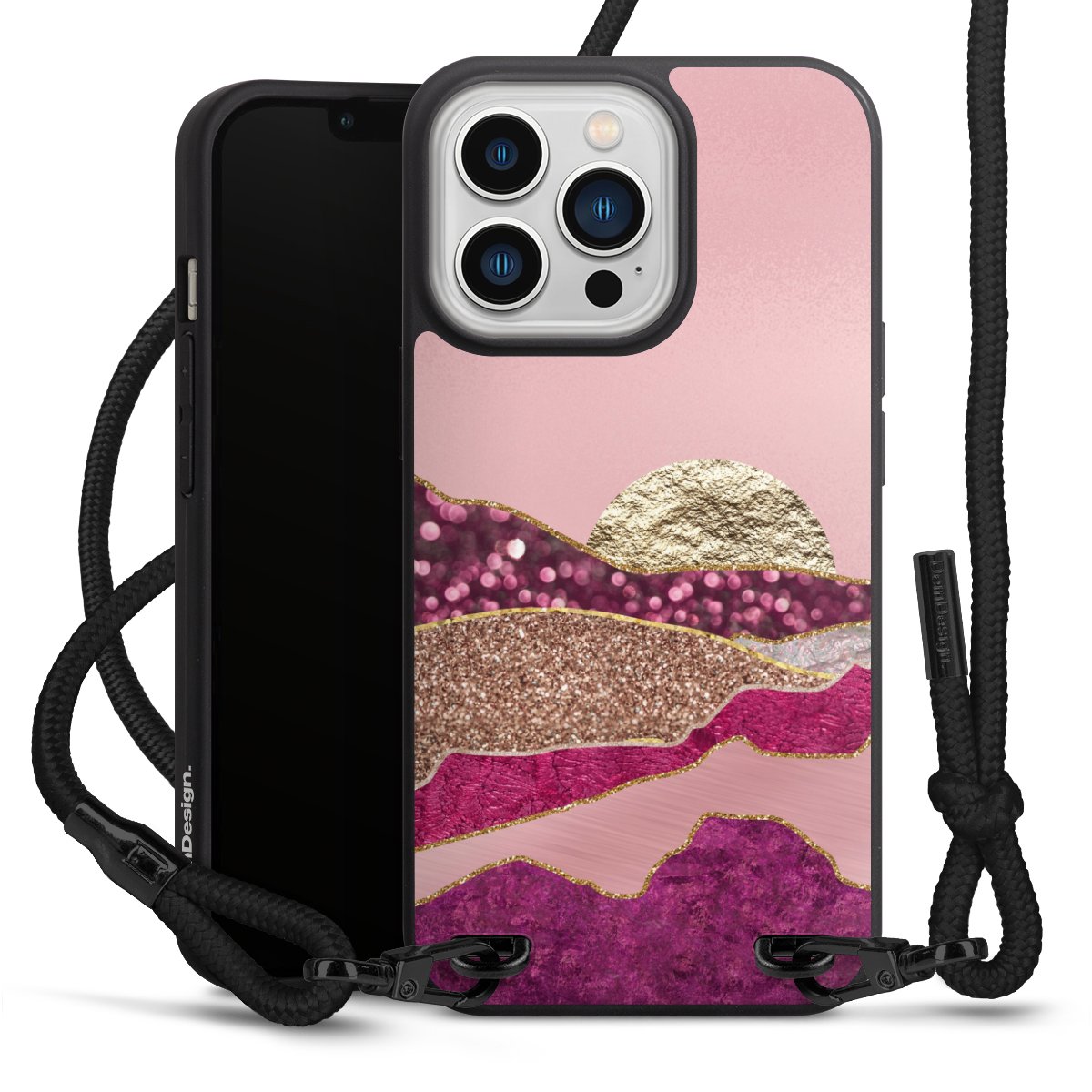 We use the solid direct print process for this phone case, which is why the print area only covers the back and the edge remains unprinted. The case to wear around your neck can be ordered unprinted, fully printed, or partially printed. For your design, either choose one of our exclusive shop motifs or get creative and create your own design, for example with photos and overlays. Design your own personal trend accessory and make an individual statement on the streets!