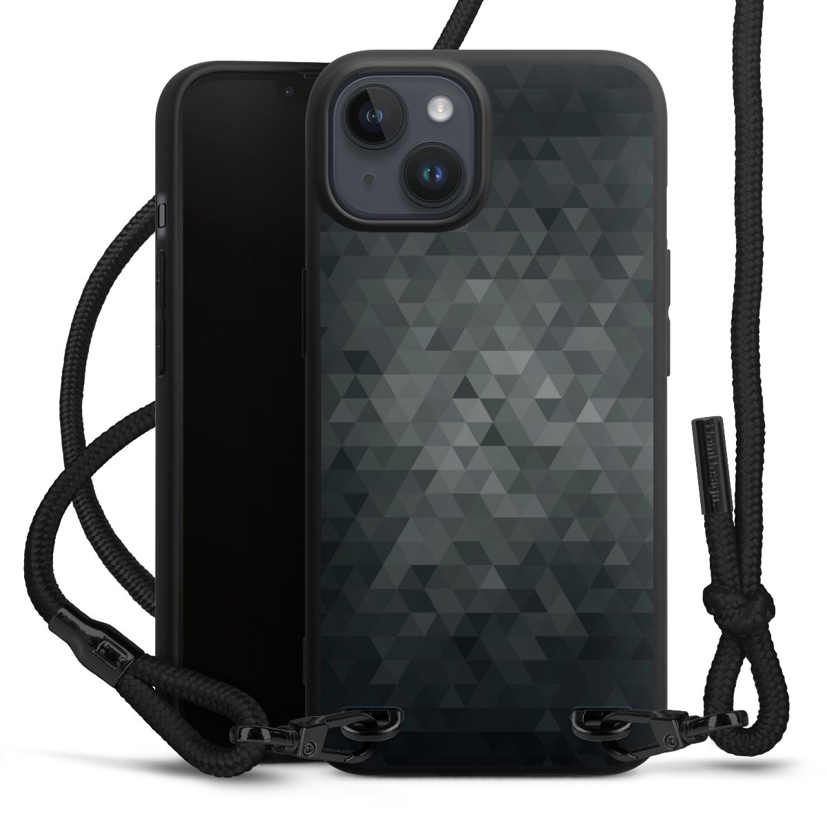 Pure Black: Phone case, fabric strap and metal details in stylish matt black.