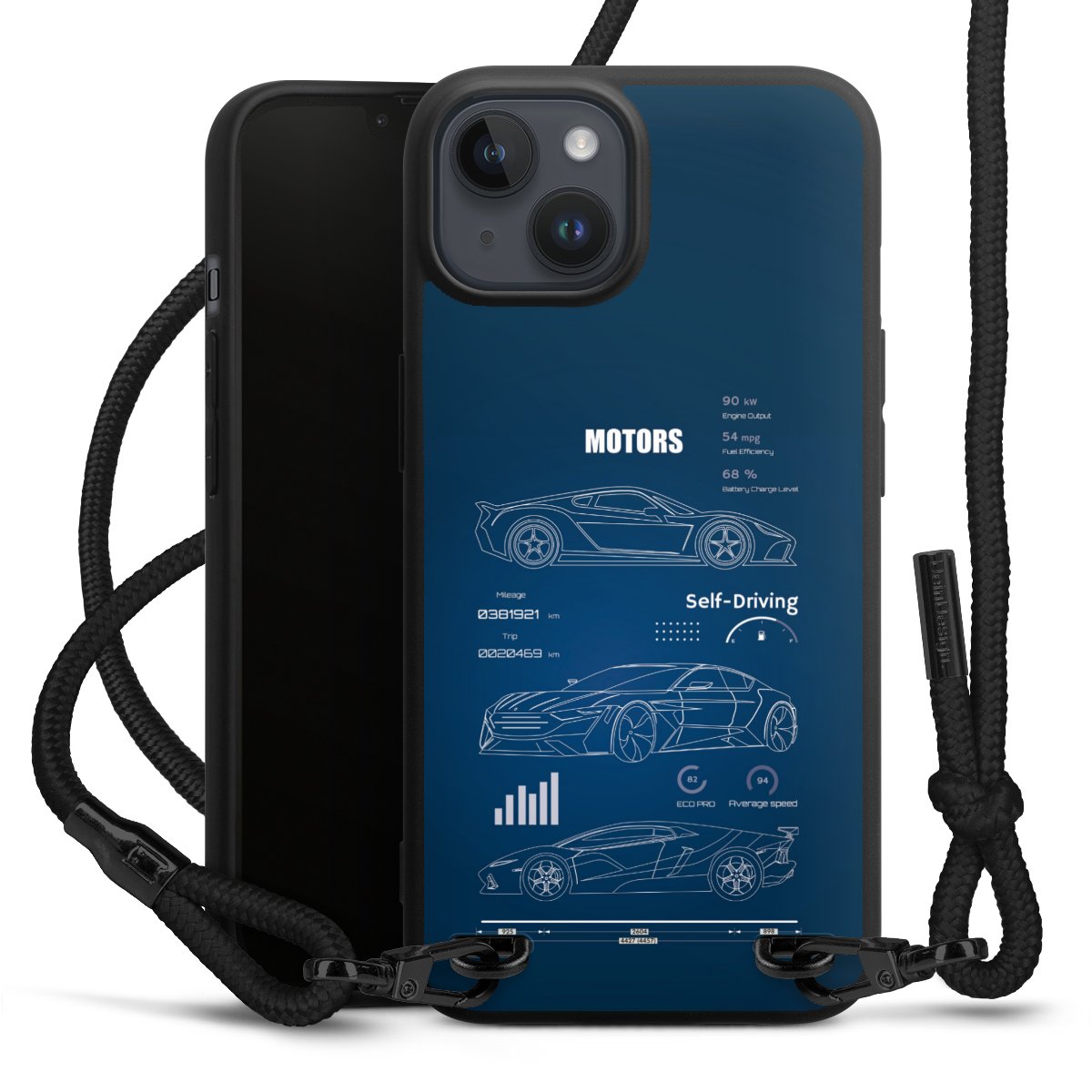 We use the solid direct print process for this phone case, which is why the print area only covers the back and the edge remains unprinted. The case to wear around your neck can be ordered unprinted, fully printed, or partially printed. For your design, either choose one of our exclusive shop motifs or get creative and create your own design, for example with photos and overlays. Design your own personal trend accessory and make an individual statement on the streets!