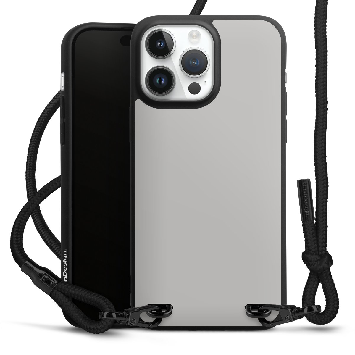 Pure Black: Phone case, fabric strap and metal details in stylish matt black.