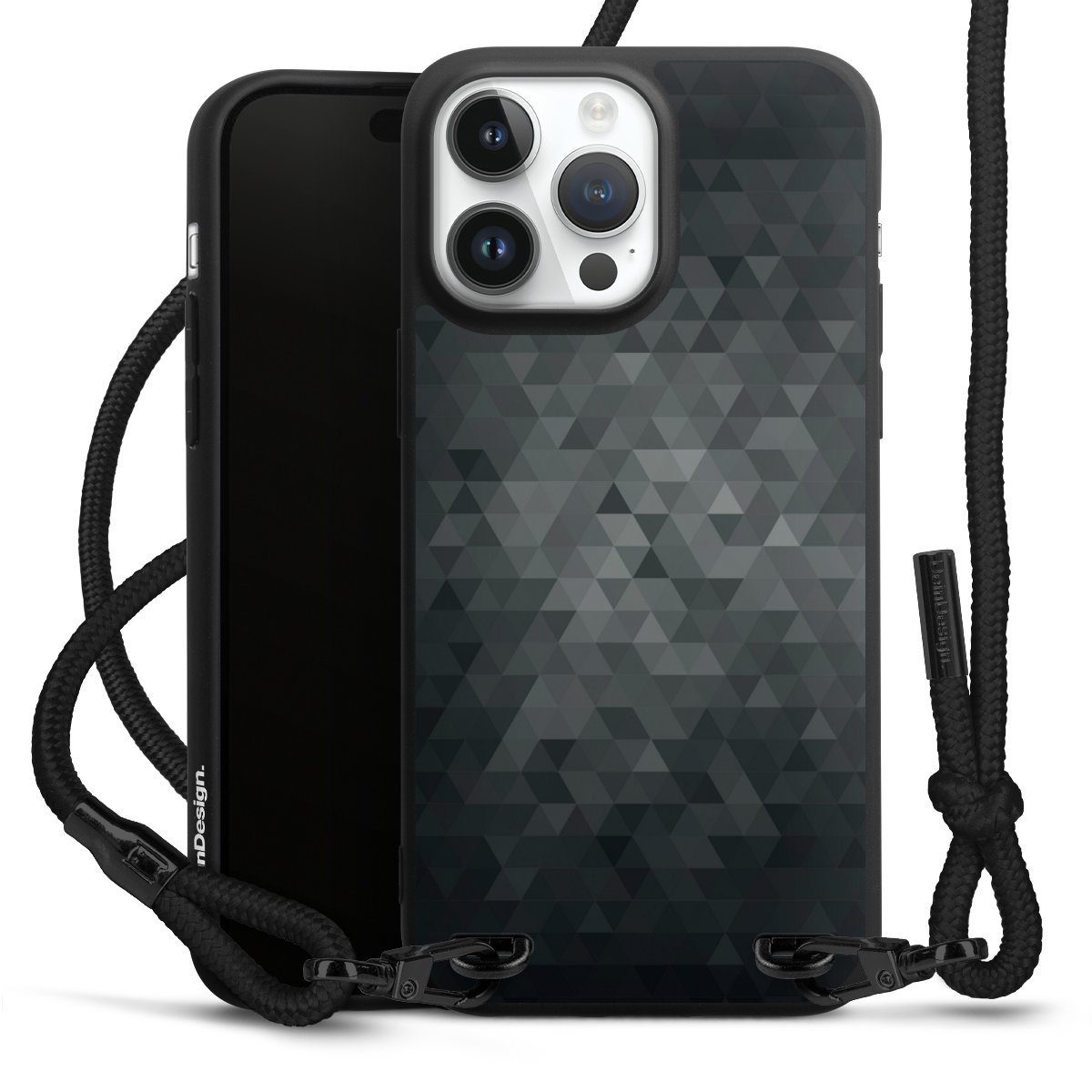 Pure Black: Phone case, fabric strap and metal details in stylish matt black.