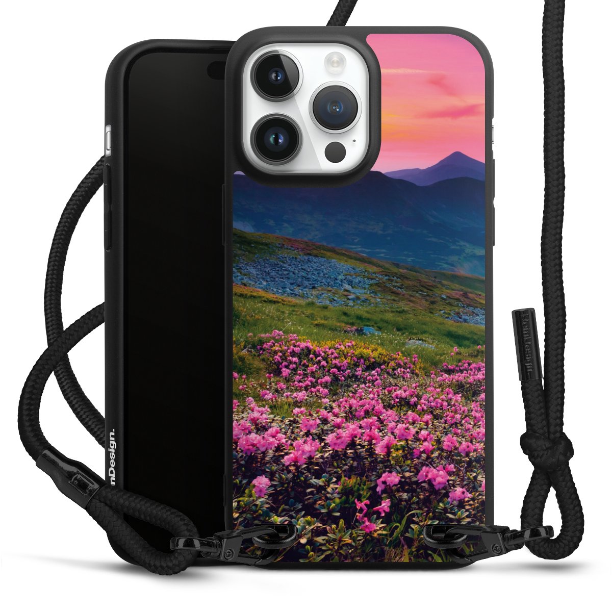 We use the solid direct print process for this phone case, which is why the print area only covers the back and the edge remains unprinted. The case to wear around your neck can be ordered unprinted, fully printed, or partially printed. For your design, either choose one of our exclusive shop motifs or get creative and create your own design, for example with photos and overlays. Design your own personal trend accessory and make an individual statement on the streets!