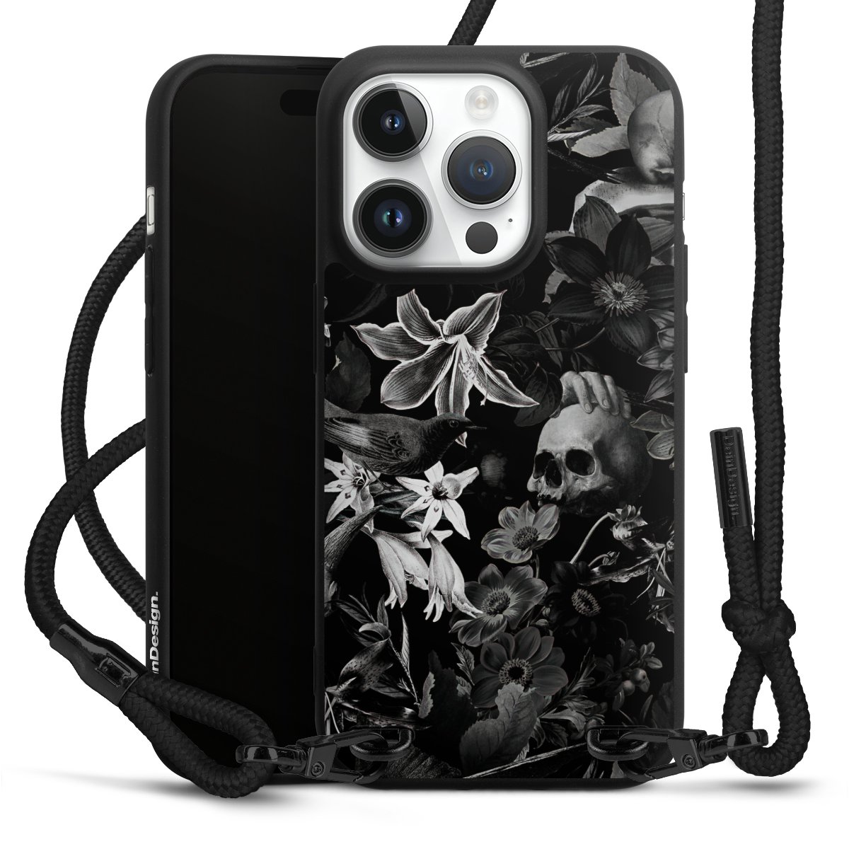 Pure Black: Phone case, fabric strap and metal details in stylish matt black.