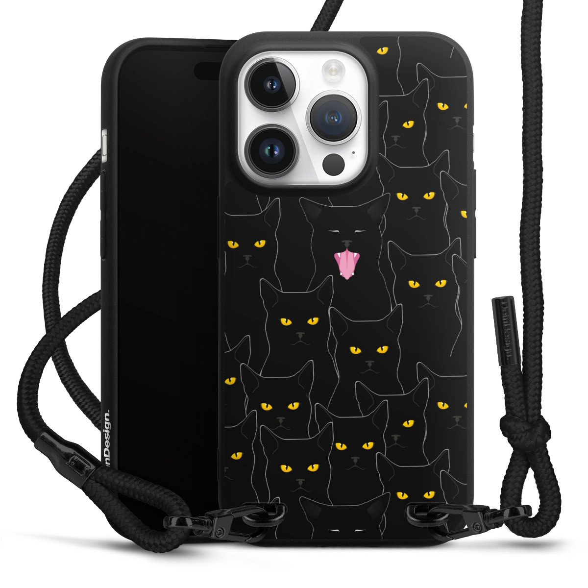Pure Black: Phone case, fabric strap and metal details in stylish matt black.