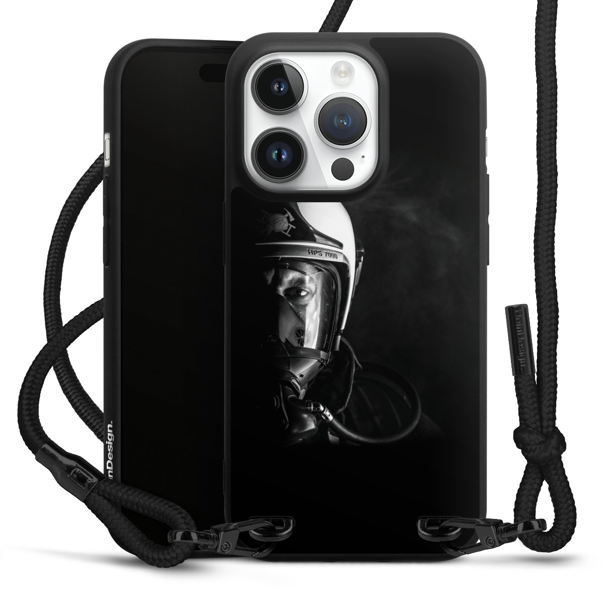 Pure Black: Phone case, fabric strap and metal details in stylish matt black.