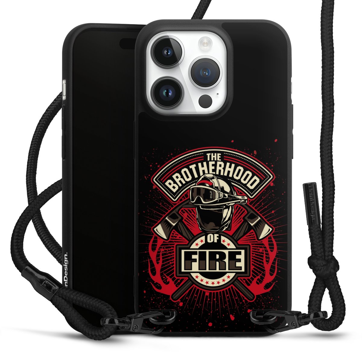 Pure Black: Phone case, fabric strap and metal details in stylish matt black.