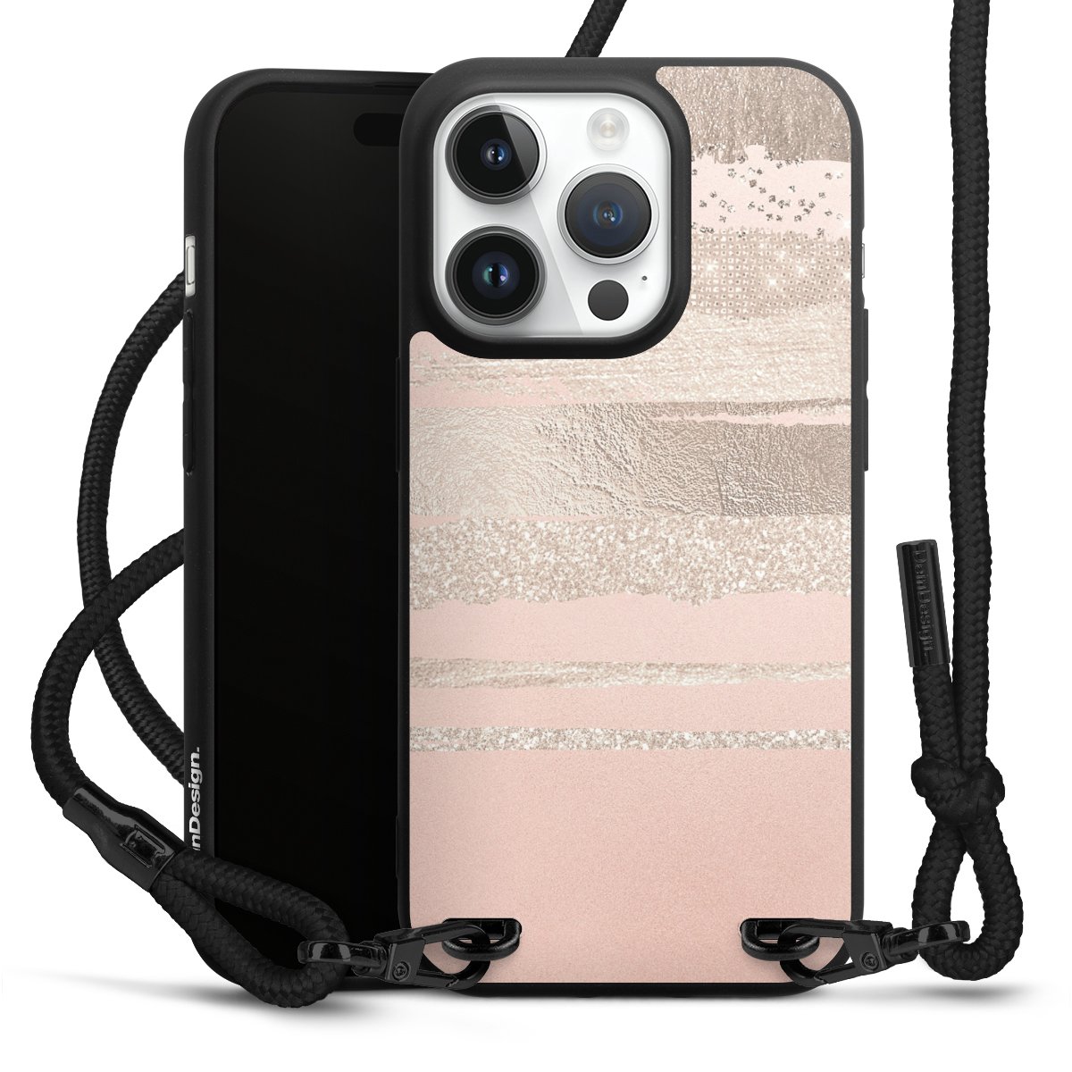 Pure Black: Phone case, fabric strap and metal details in stylish matt black.