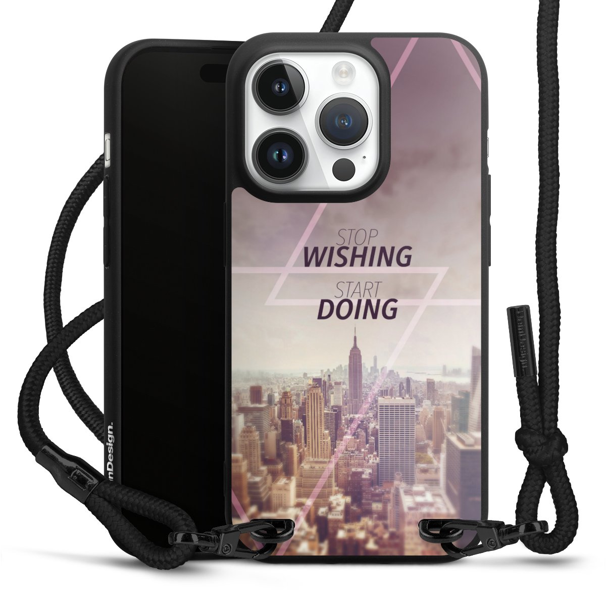 We use the solid direct print process for this phone case, which is why the print area only covers the back and the edge remains unprinted. The case to wear around your neck can be ordered unprinted, fully printed, or partially printed. For your design, either choose one of our exclusive shop motifs or get creative and create your own design, for example with photos and overlays. Design your own personal trend accessory and make an individual statement on the streets!